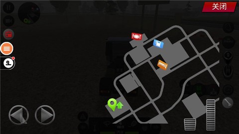 刚上手别担心,操作逻辑很直观。界面左侧集中了车灯、雨刷、喇叭这些功能键,右侧则是油门、刹车以及关键的拉货卸货按钮。屏幕一角的小地图是你的导航神器,记得随时点开看看。