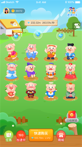 1、初始时,你可以自由选择不同的小猪,随着游戏的深入,还能解锁更多萌态可掬的猪猪,简直让人期待!