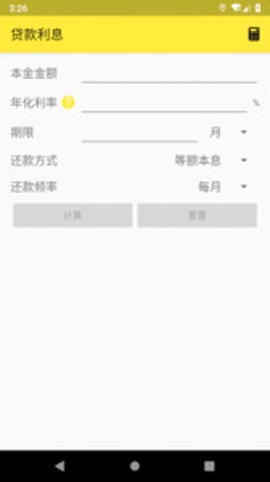 2、界面设计简约大方,软件占用空间小,只需输入相关数据,轻松一键,就能快速计算出利息,特别适合用来计算房贷和车贷,准确度一点都不马虎。