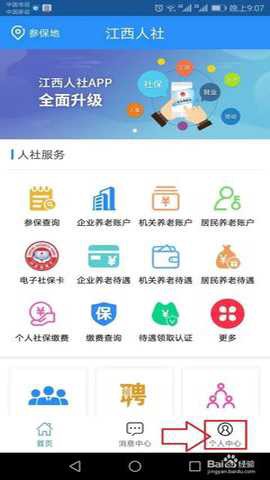 1. 下载并登录江西人社app,进入主页后点击个人中心完成注册。